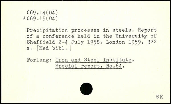 Precipitation processes in steels. Report of a conference held in the University of Sheffield 2-4 July 1958