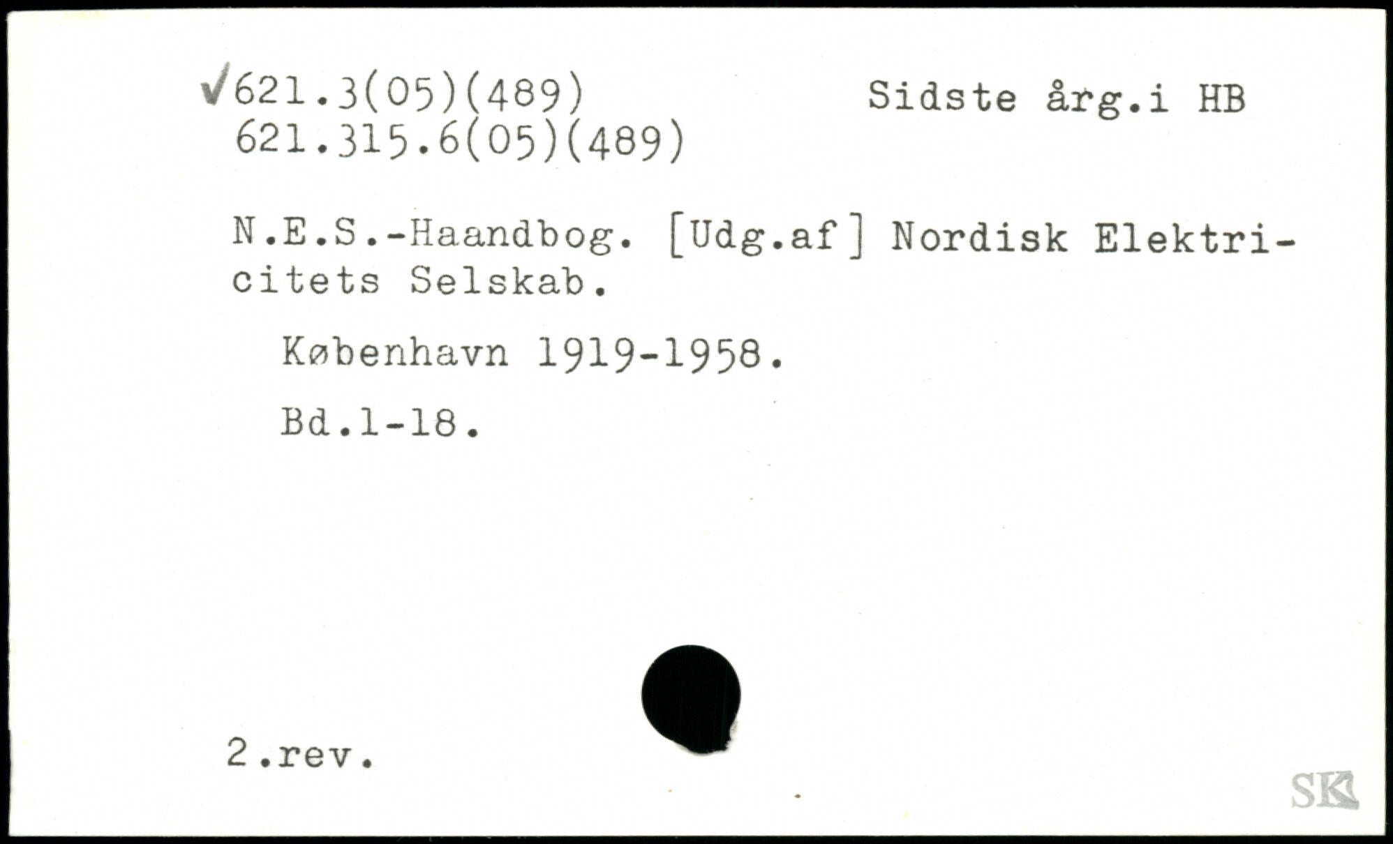N.E.S.-Haandbog. [Udg.af] Nordisk Elektricitets Selskab.