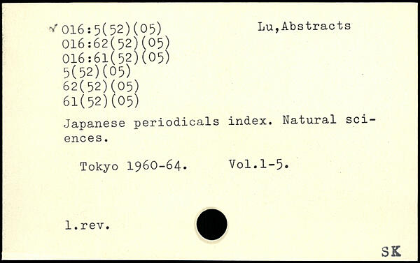 UDK: 016:5(52)(05), 016:61(52)(05), 5(52)(05), 62(52)(05), 61(52)(05)