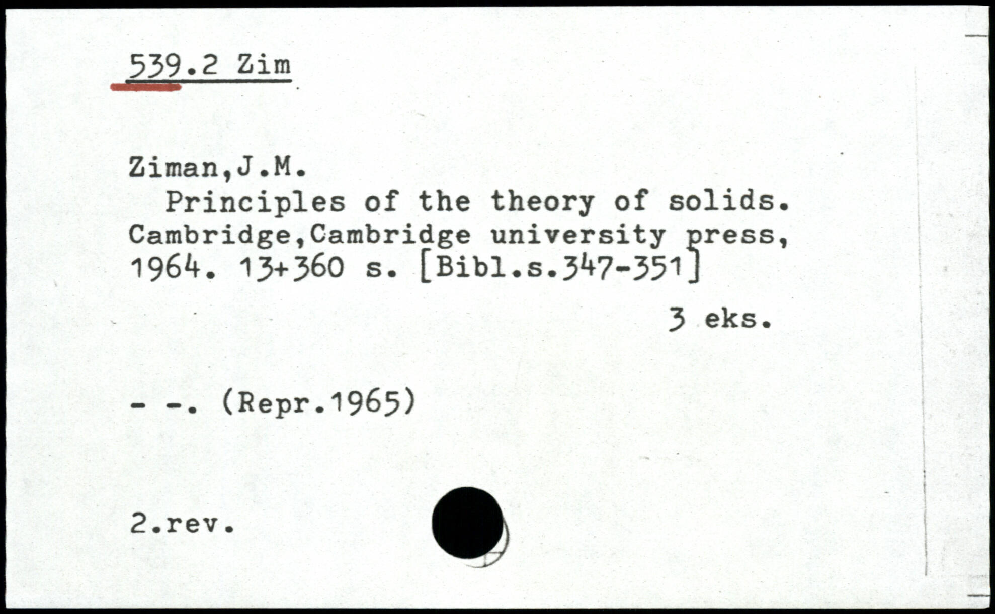 Principles of the theory of solids. Cambridge,Cambridge university press, 196...
