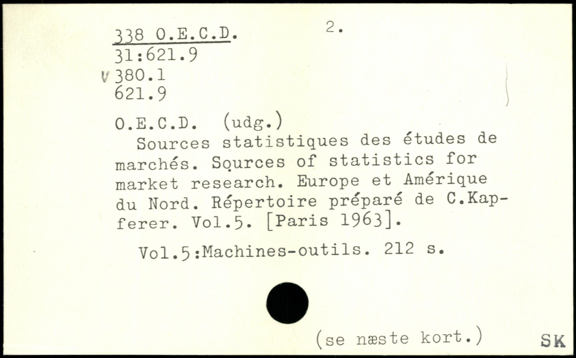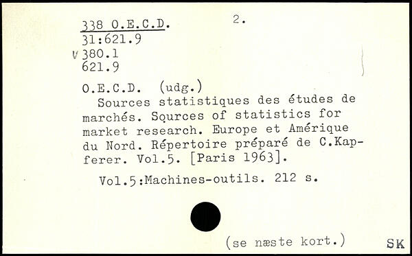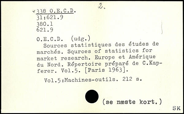 Sources statistiques des etudes de marches. Sources of statistics for market research. Europe et Amérique du Nord. Répertoire préparé de C.Kap-ferer.