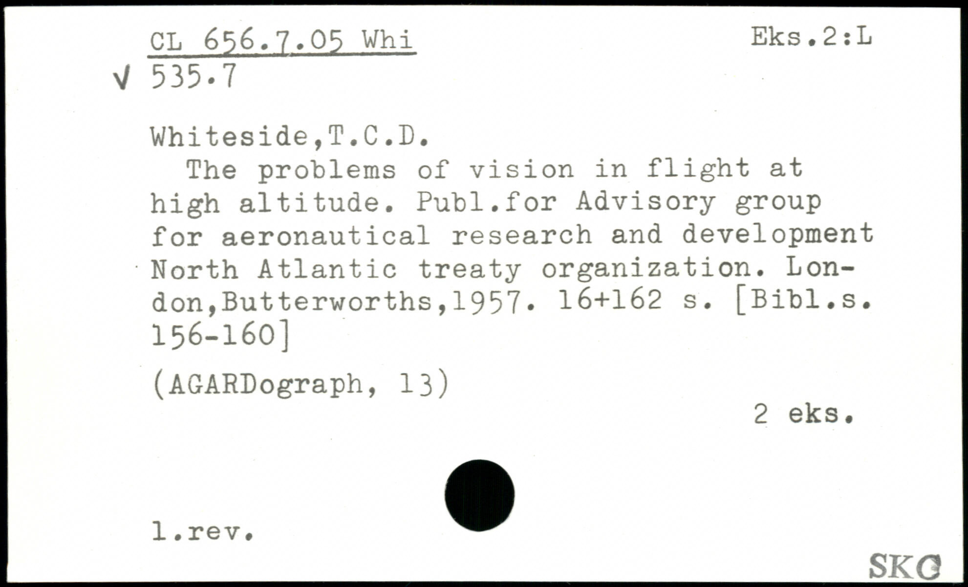 The problems of vision in flight at high altitude. Publ.for Advisory group for aeronautical research and development North Atlantic treaty organization.