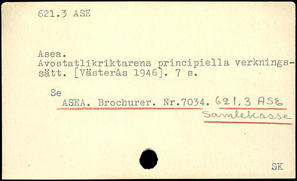Avostatlikriktarens principiella verkningssätt. [Västerås 1946.
