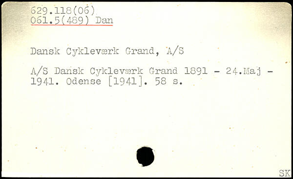 Dansk Cykle værk C-rand, A/S A/S Dansk Cykleværk Grand 1891 - 24.Maj -1941. Odense [1941j.