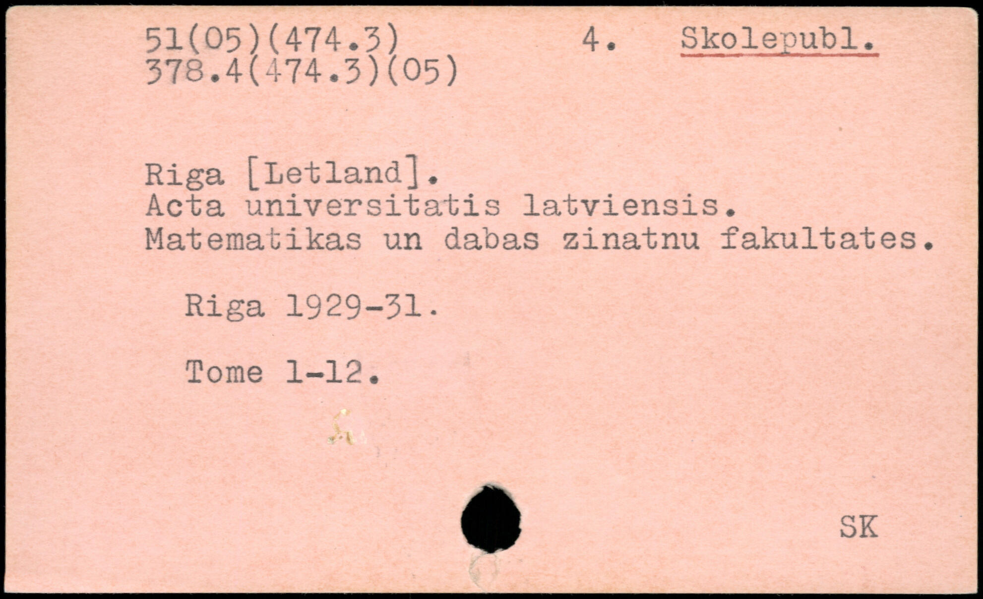 Riga [Letland], Acta universitatis latviensis. Matematikas un dabas zinatnu fakultates. Riga 1929-31. Tome 1-12.