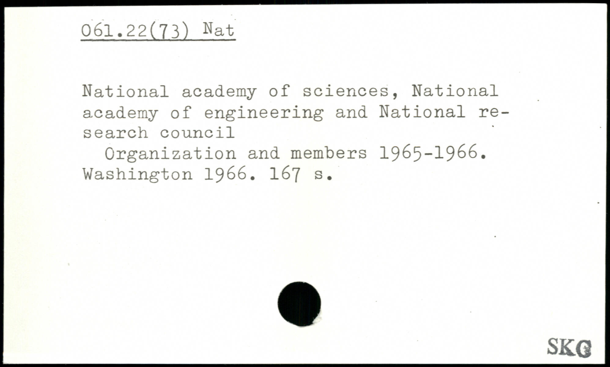 National academy of sciences, National academy of engineering and National research council Organization and members 1965-1966.