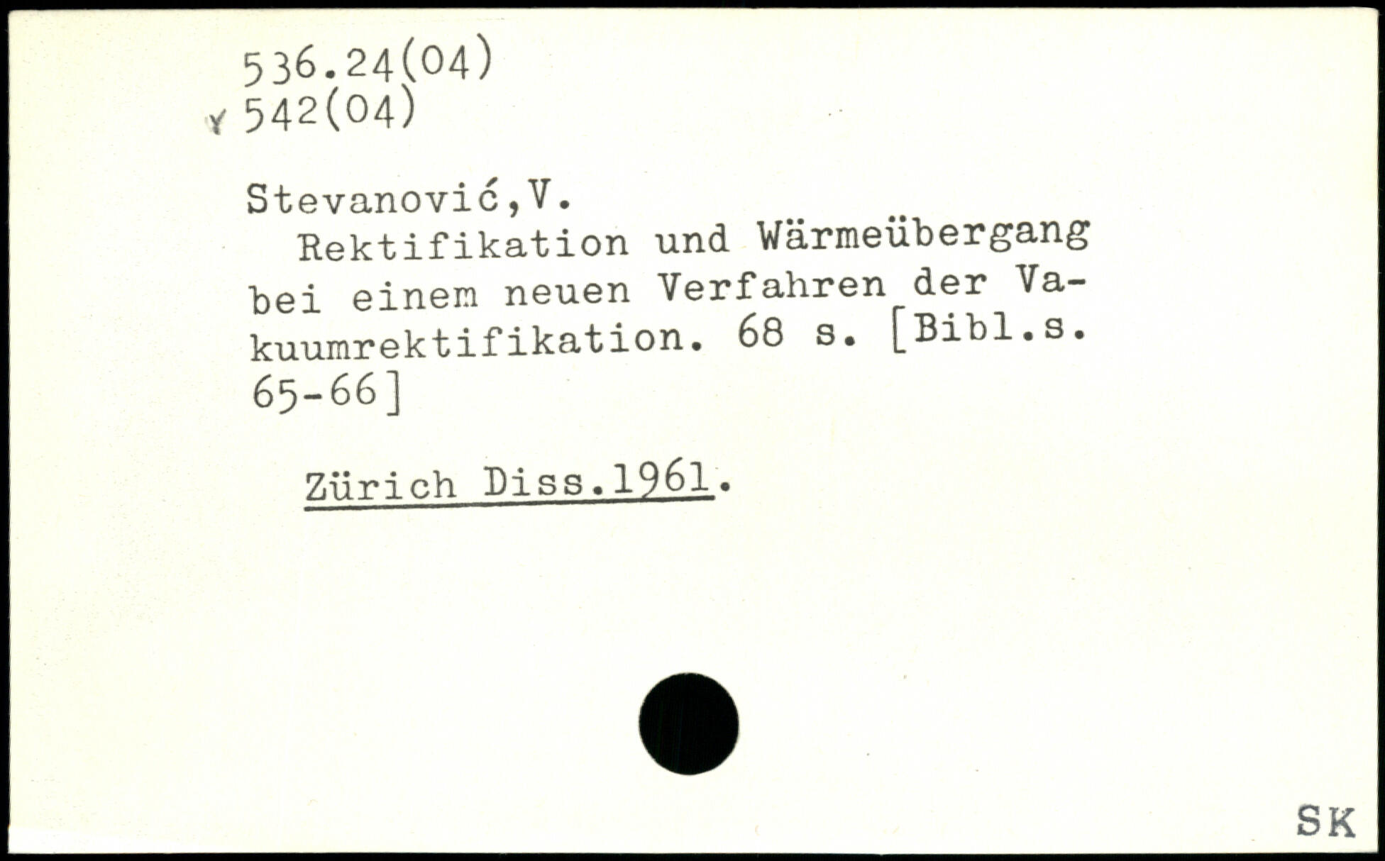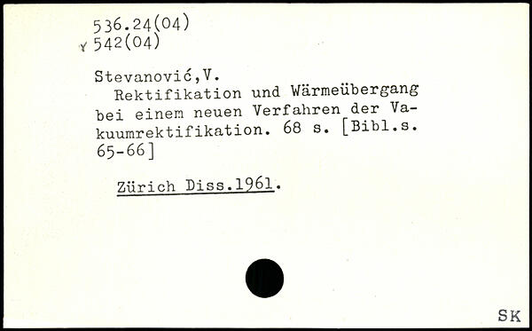 Rektifikation und Wärmeübergang bei einem neuen Verfahren der Vakuumrektifikation.