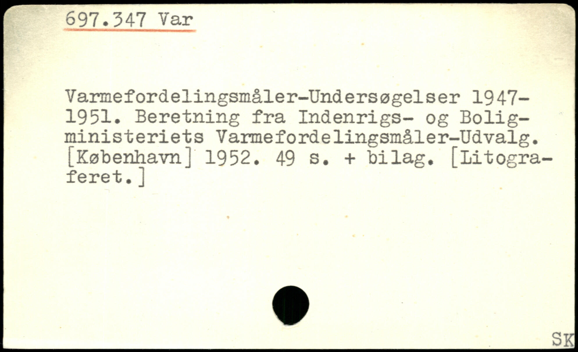 Varmefordelingsmåler-Undersøgelser 1947-1951. Beretning fra Indenrigs- og Boligministeriets V arme fo rd elingsmåle r-Udvalg.