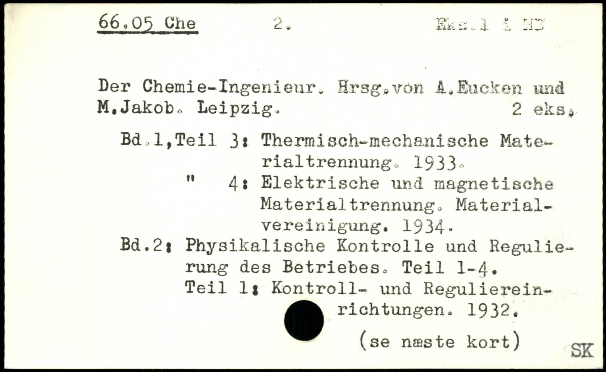 Der Chemie-Ingenieur. Hrsg.von Å.Eucken und M.Jakob, Leipzig. 2 eks. Bd,l,Teil 3. Thermisch-mechanische Material trennungo 1933> " 4. Elektrische und magnetische Materialtrennung, Materialvereinigung. 1934.