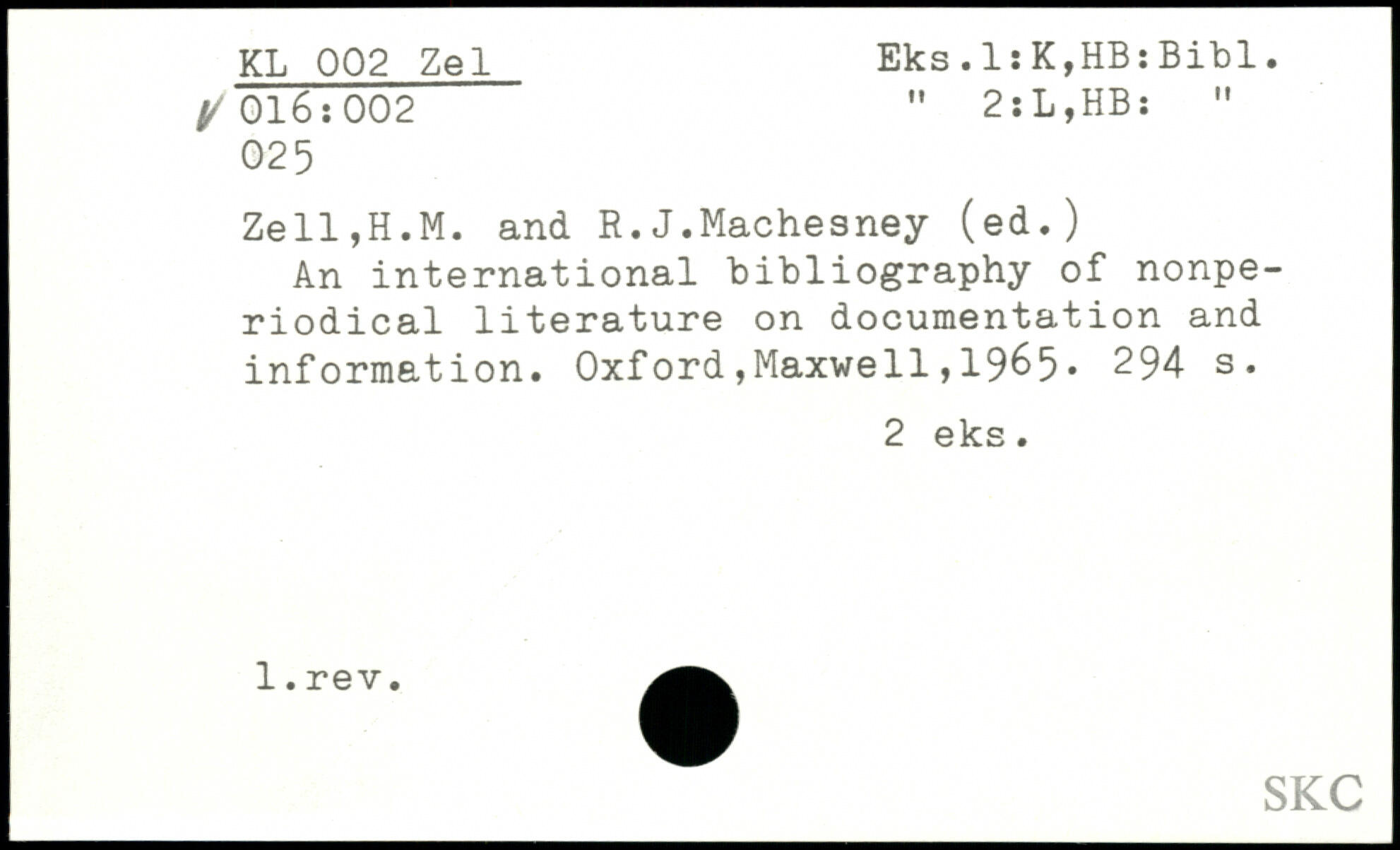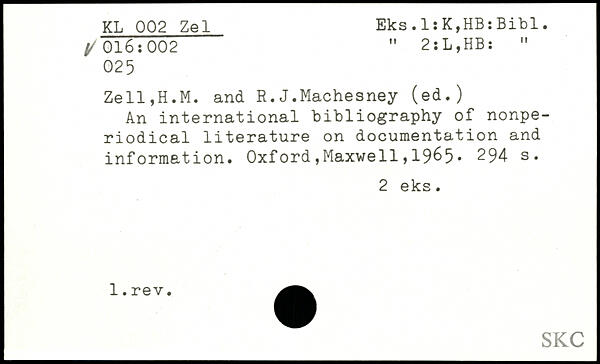 An international bibliography of nonperiodical literature on documentation and information. Oxford,Maxwell,19^5.