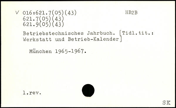 Betriebstechnisches Jahrbuch. [Tidl.tit.s Werkstatt und Betrieb-Kalender]