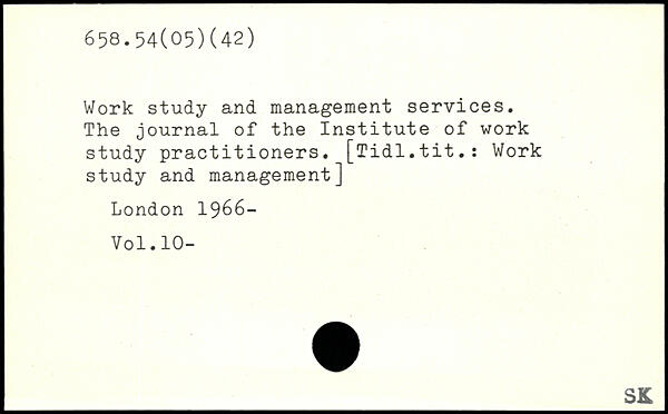 Work study and management services. The journal of the Institute of work study practitioners. [Tidl.tit.i Work study and management]