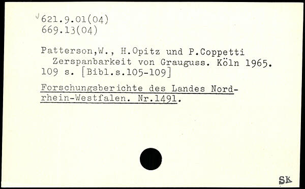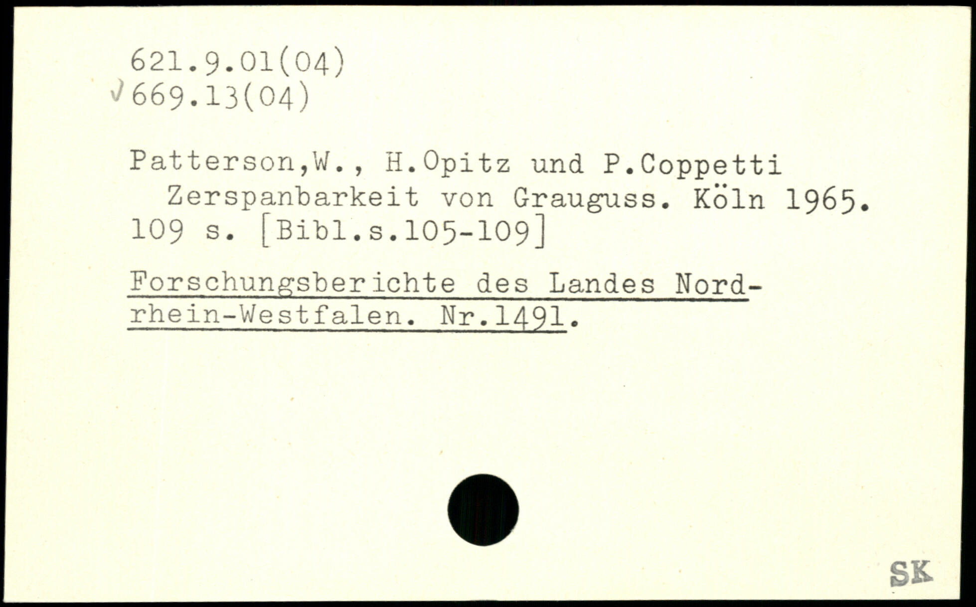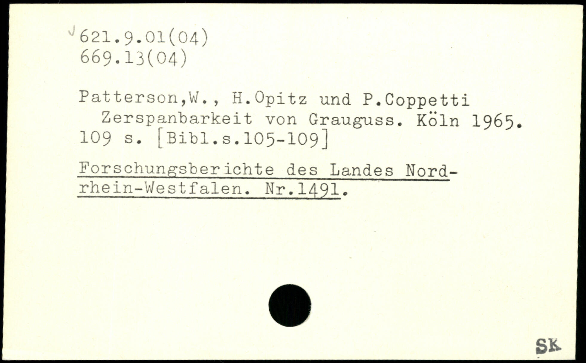 Patterson,W. , H. Opitz und. P.Coppetti Zerspanbarkeit von Grauguss.