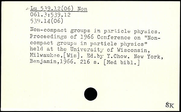 Non-compact groups in particle physics. Proceedings of 1960 Conference on "Non-compact groups in particle physics" held at the University of Wisconsin, Milwaukee,[Wis]. Ed.by I.Chow.