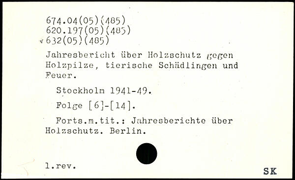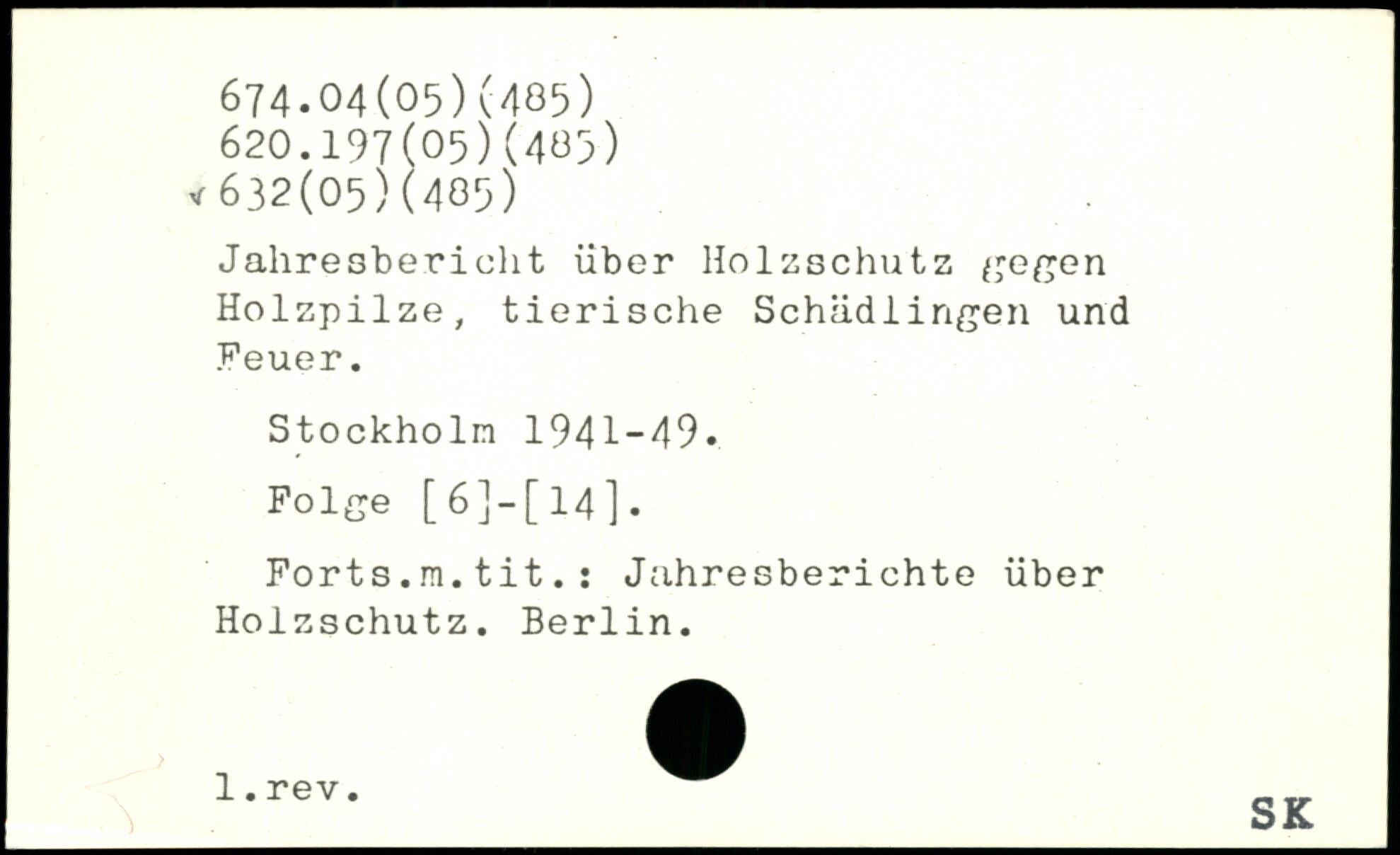 Jahresbericht über Holzschutz ^ogen Holzpilze, tierische Schädlingen und Feuer.