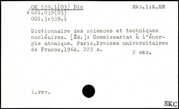 Dictionnaire des sciences et techniques nucléaires. [Éd.]: Commissariat à 1'énergie atomique.