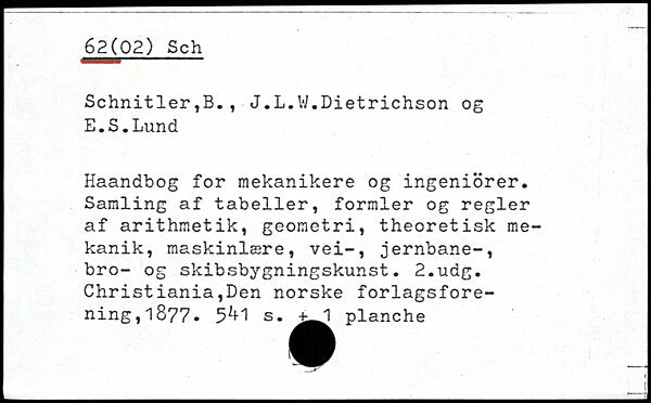Haandbog for mekanikere og ingeniorer. Samling af tabeller, formler og regler af arithraetik, geometri, theoretisk mekanik, maskinlære, vei-, jernbane-, bro- og skibsbygningskunst.