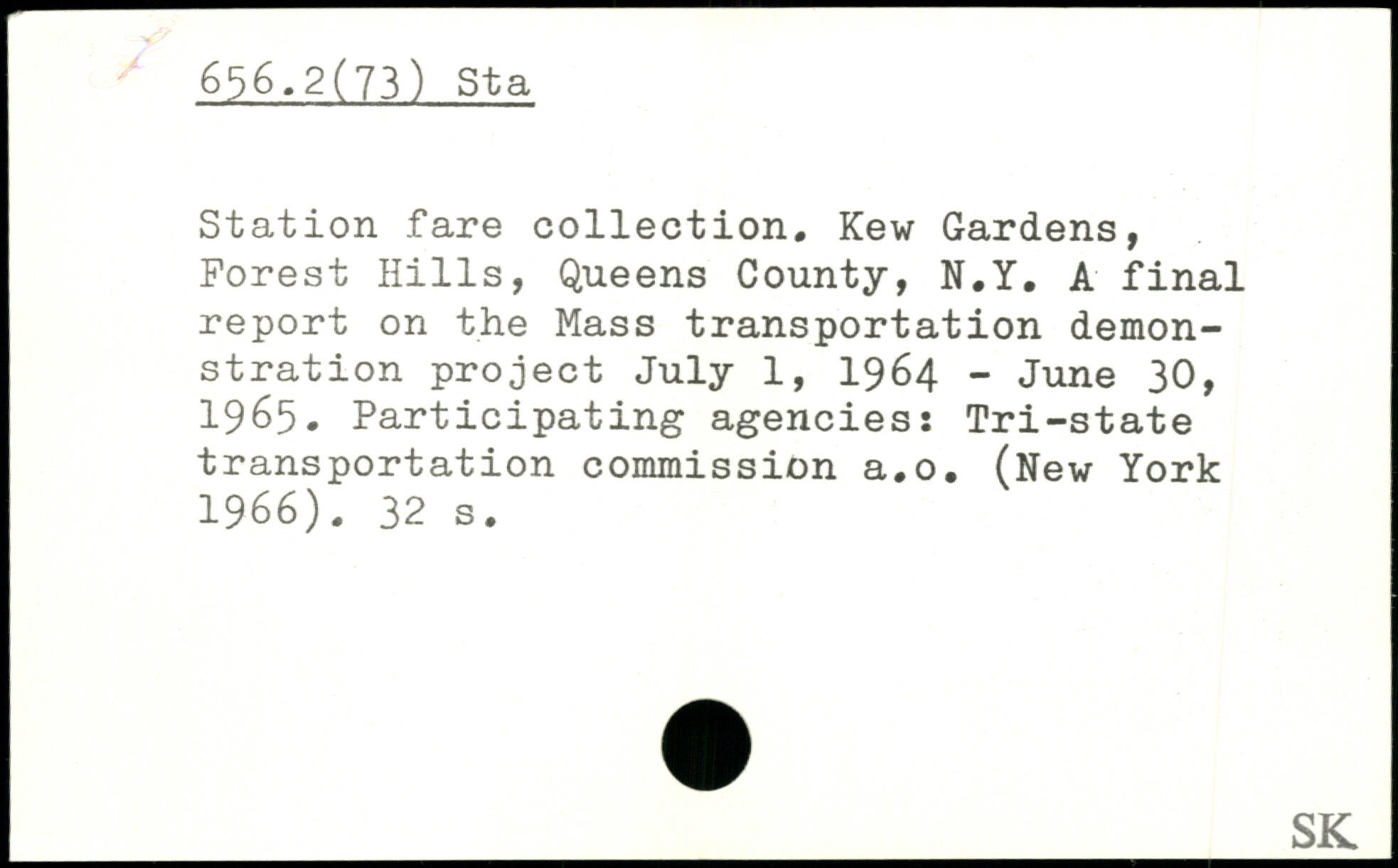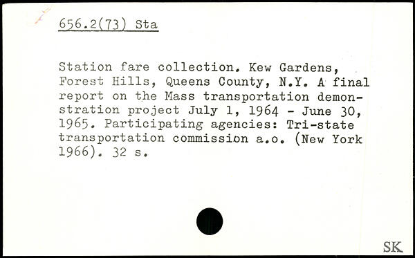 Station fare collection. Kew Gardens, Forest Hills, Queens County, N.Y. A final report on the Mass transportation demonstration project July 1, 1964 - June 30, 1965. Participating agencies: Tri-state transportation commission a.o. (