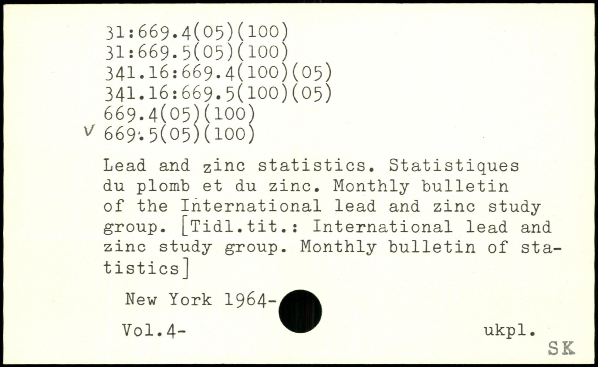 Lead and zinc statistics. Statistiques du plomb et du zinc. Monthly bulletin of the International lead and zinc study group. [Tidl.tit.i International lead and zinc study group. Monthly bulletin of statistics]