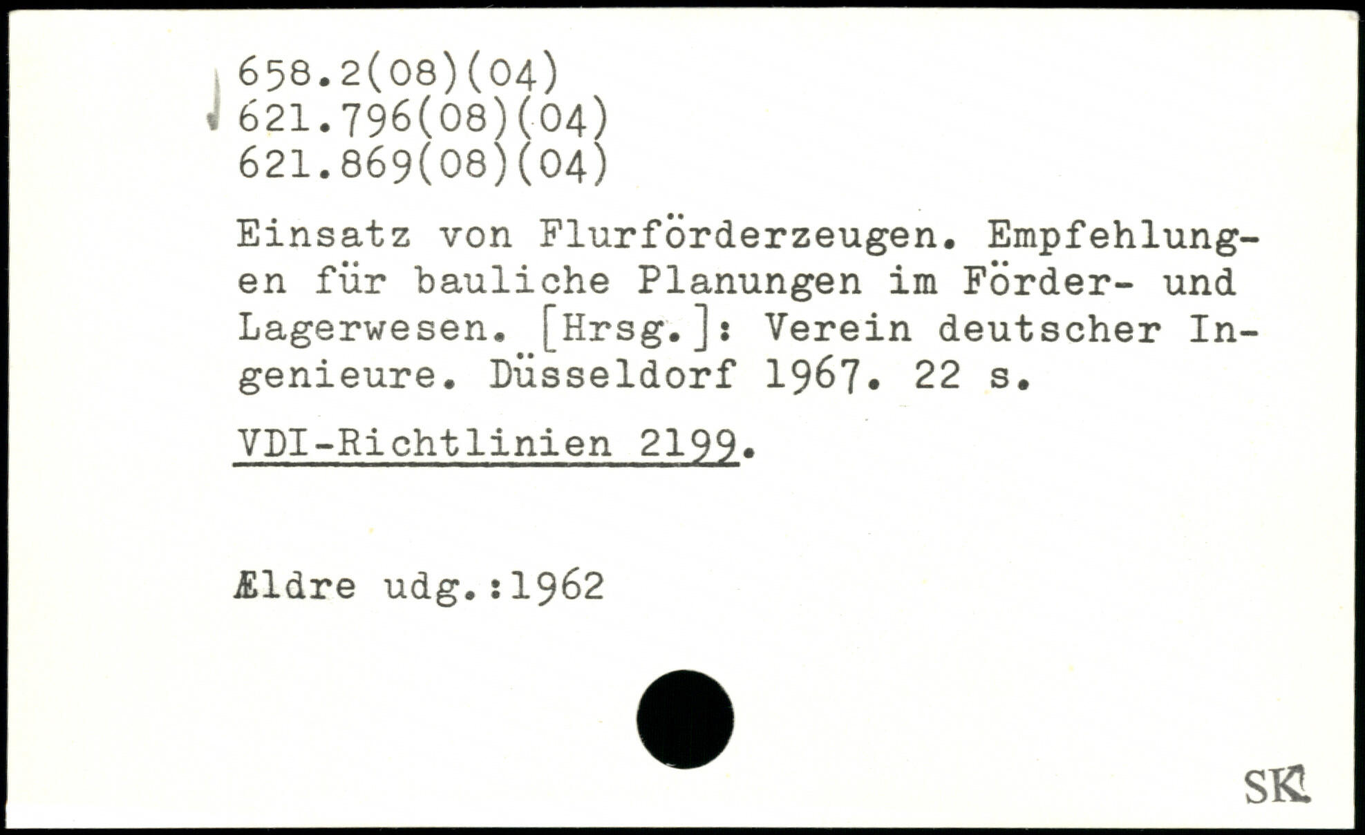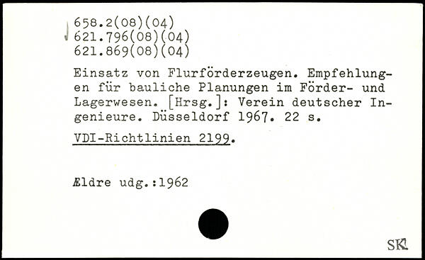 Einsatz von Flurförderzeugen. Empfehlungen für bauliche Planungen im FÖrder- und Lagerwesen. [Hrsg.]: Verein deutscher Ingenieure. Düsseldorf 1967