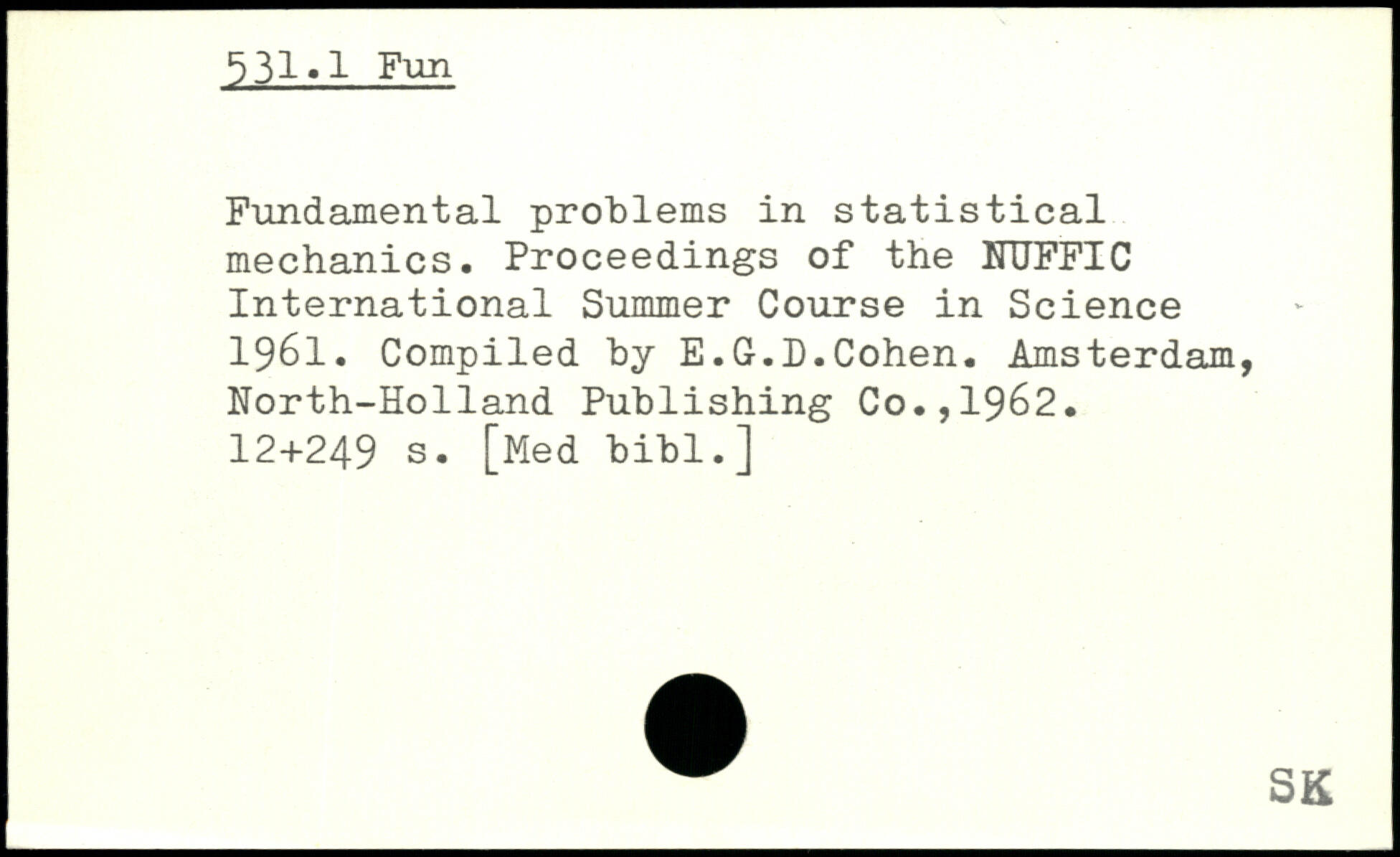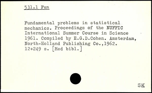 Fundamental problems in statistical mechanics. Proceedings of the UTJFFIC International Summer Course in Science 1961. Compiled by E.G.D.Cohen.