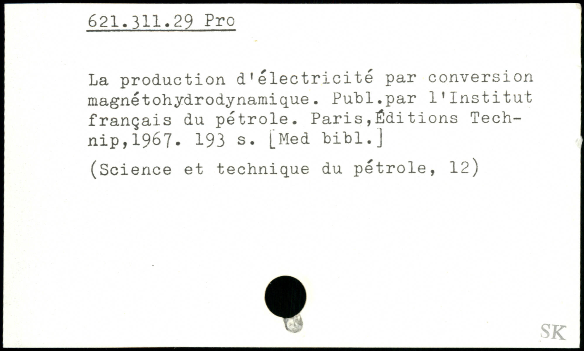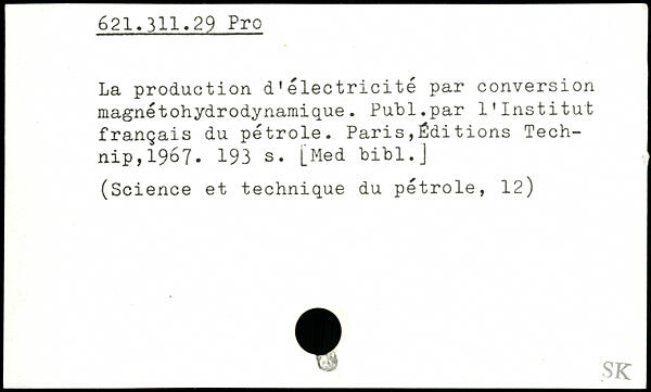 La production d'électricite par conversion magnétohydrodynamique. Publ.par l'Institut français du pétrole. Paris,Éditions Tech-nip,19ô7-
