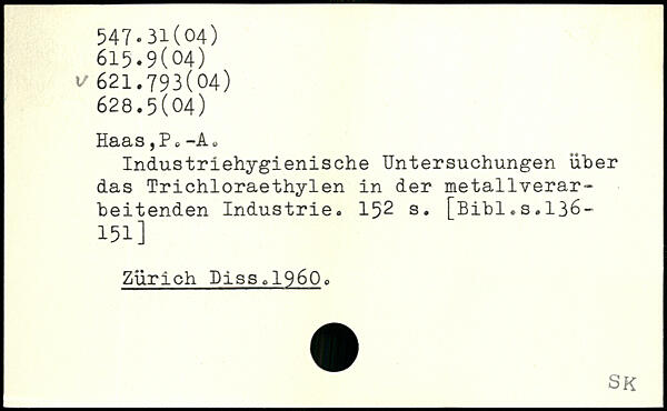 Industriehygienische Untersuchungen über das Trichloraethylen in der metallverarbeitenden Industrie.