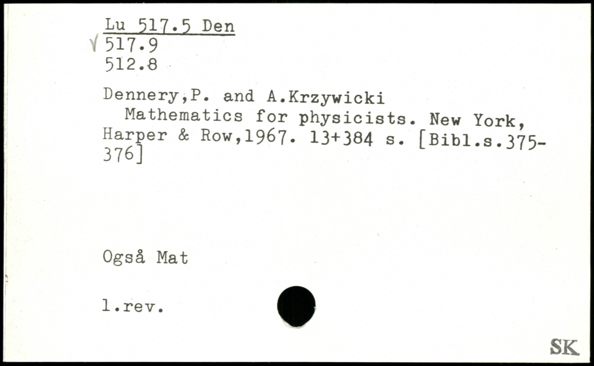 Forfatter: P. Dennery, A. Krzywicki