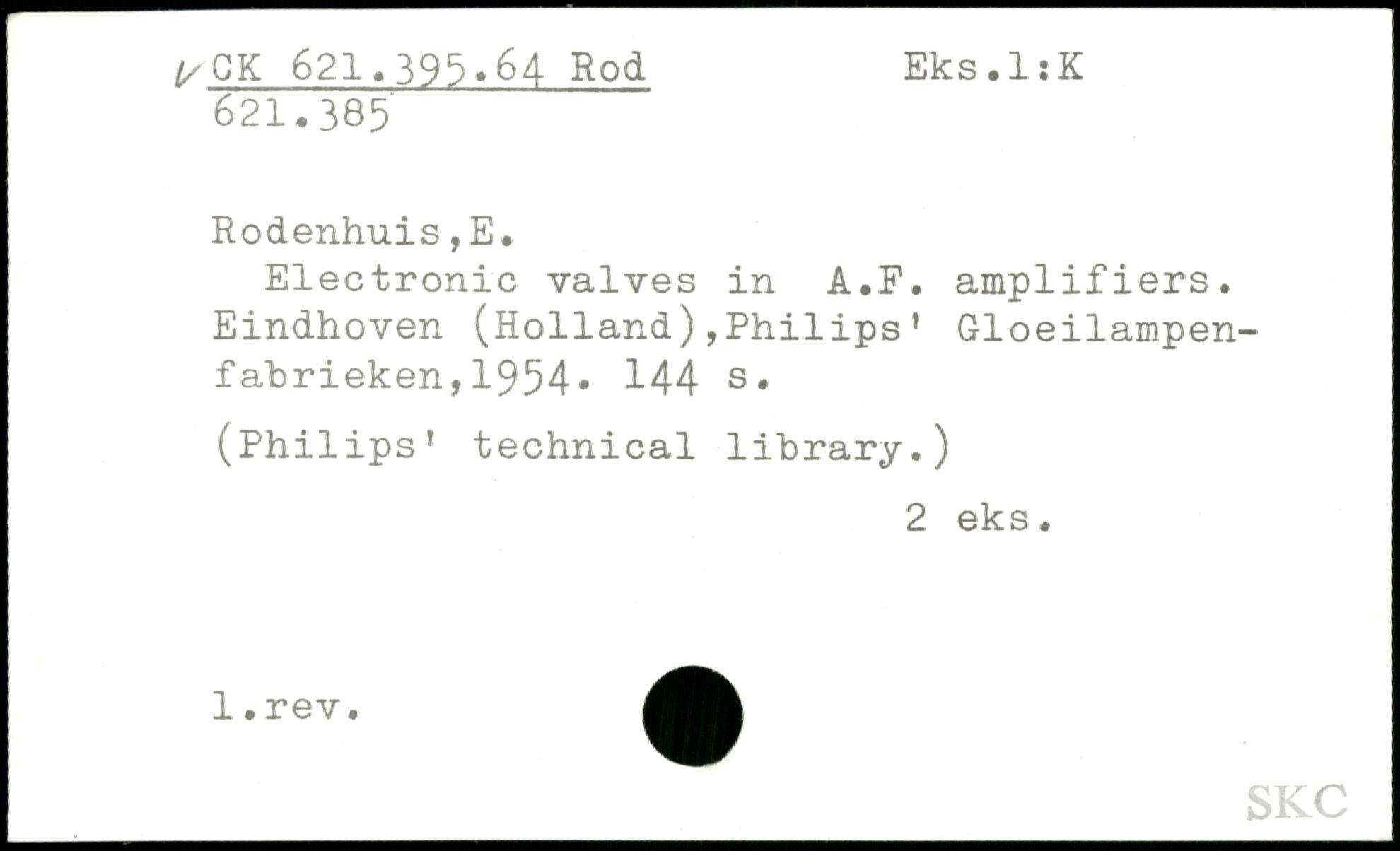 Electronic valves in A.F. amplifiers. Eindhoven (Holland),Philips’ Gloeilampen- fahrieken,1954.