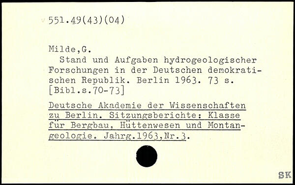 Stand und Aufgaben hydrogeologischer Forschungen in der Deutschen demokrati- < sehen Republik.