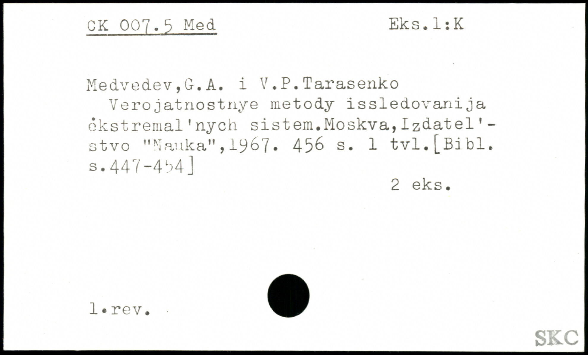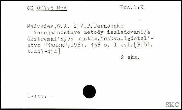 Verojatnostnye metody issledovanija ekstremal'nych sistem.Moskva,Izdatel1 -stvo "Nauka",1967. 45& s. 1 tvl.