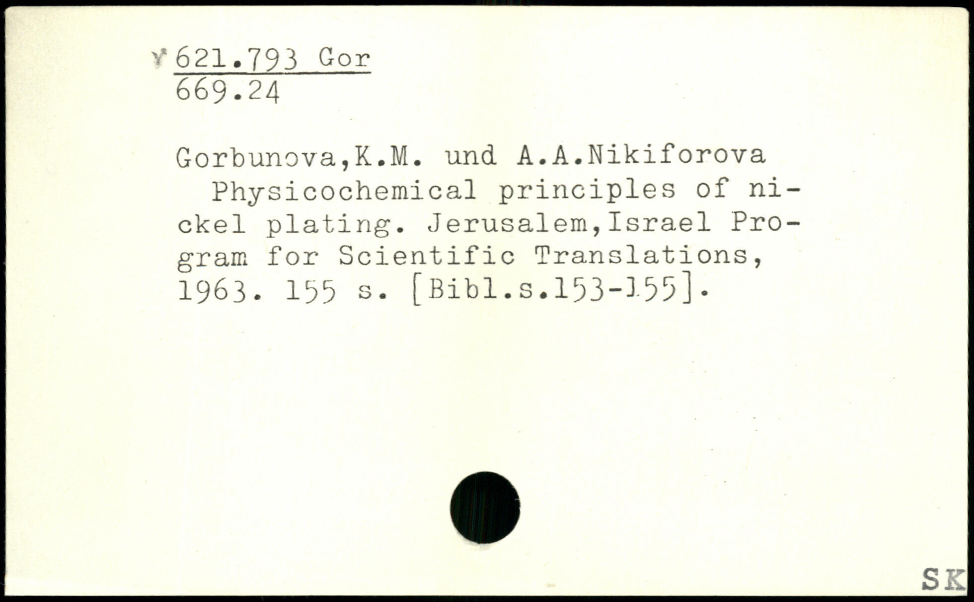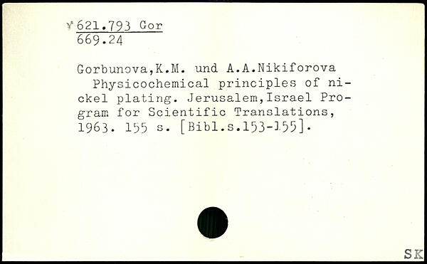 Gorbunova,K.M. und. A.A.Nikiforova Physicochemical principles of nickel plating. Jerusalem,Israel Program for Scientific Translations, 1963.