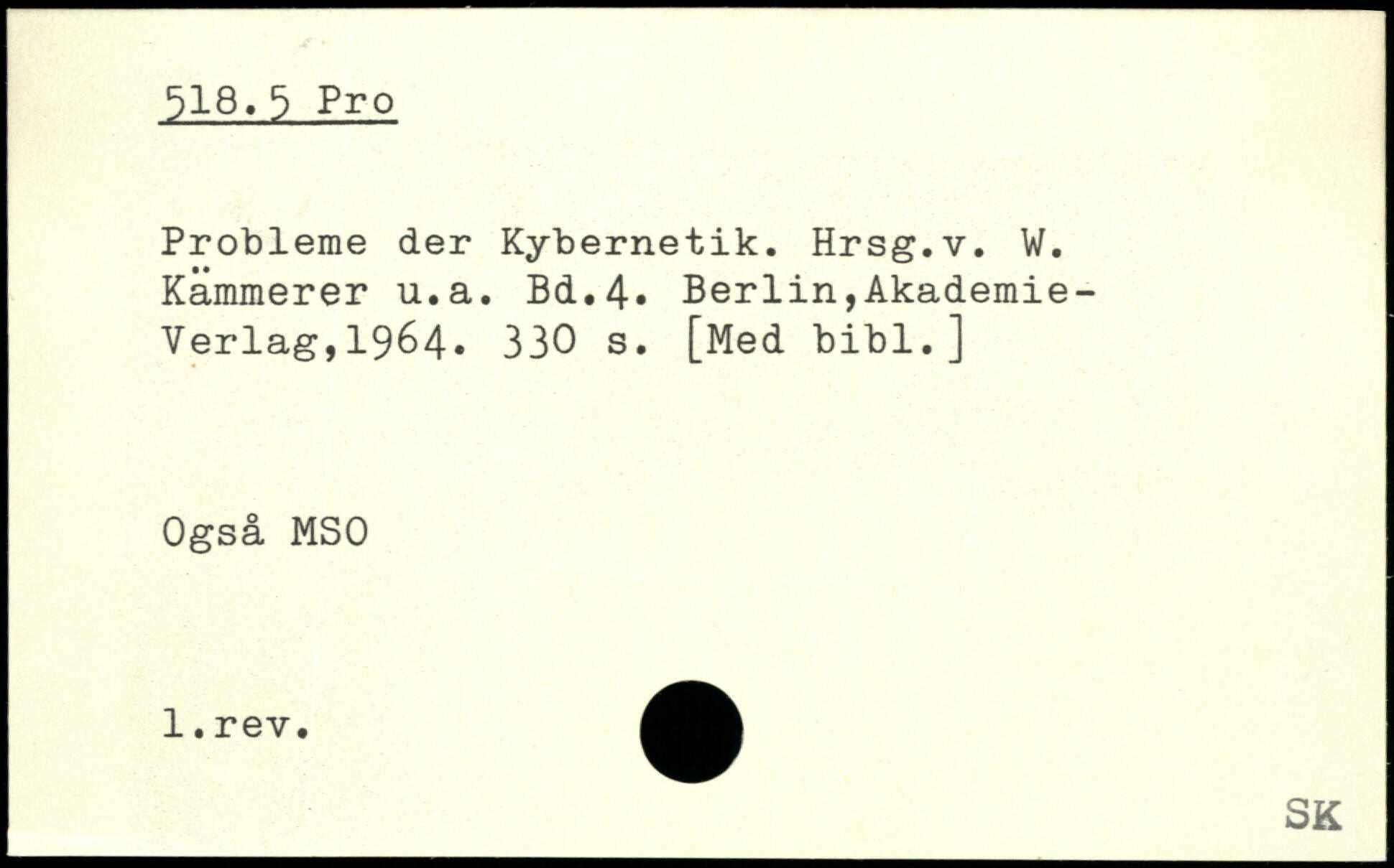 Probleme der Kybernetik. Hrsg.v. W. Kämmerer u.a.