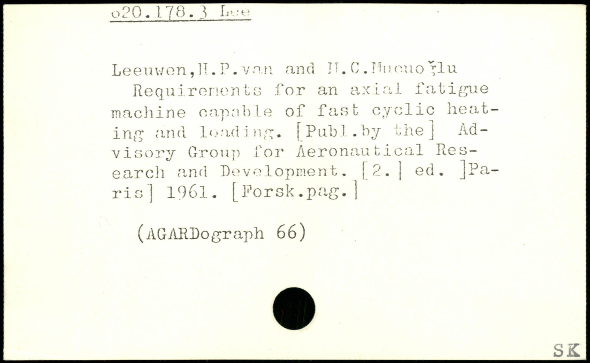 Leeuwen,lI.P.vnn and ÎT. C .Mucuo^lu Requirements for an axial fatigue machine capable of fact cyclic heating and loading.