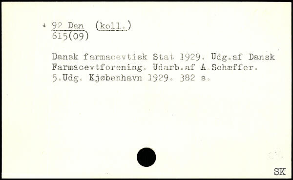 Dansk farmaoevtisk Stat 1929’ Udg,af Dansk Farmacevtf orening, Udarb. af A. Schaeffer, 5oUdgo Kjøbenhavn 1929