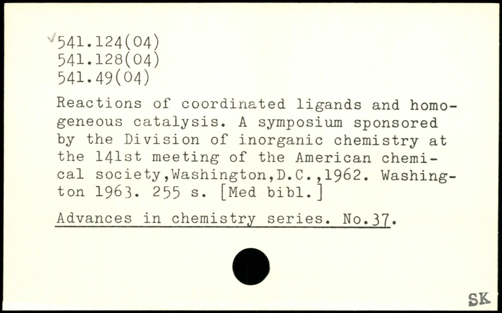 Reactions of coordinated ligands and homogeneous catalysis. A symposium sponsored by the Division of inorganic chemistry at the 141st meeting of the American chemical society,Washington,D.C1962.