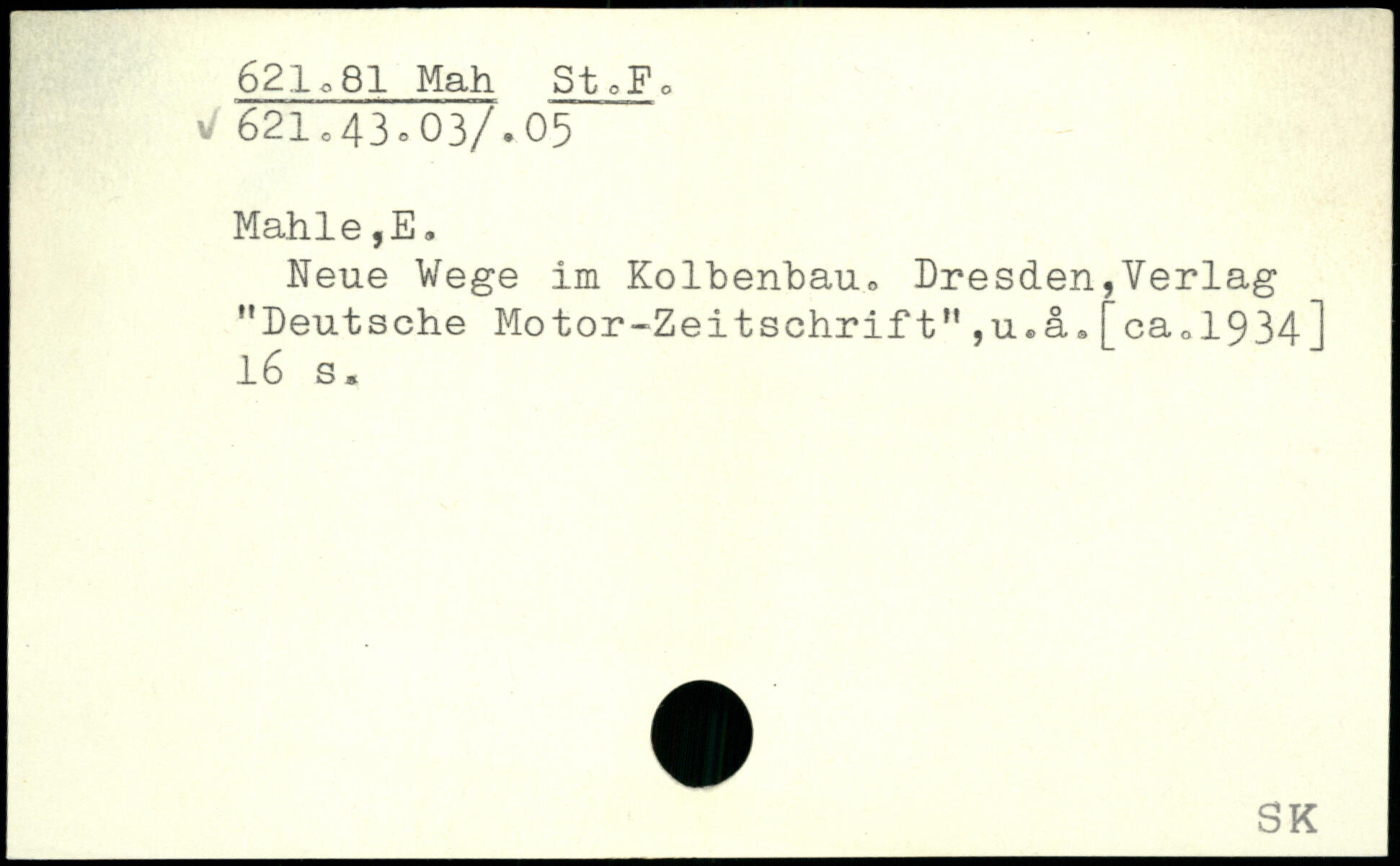 Neue Vege Im Kolbenbau. Dresden,Verlag "Deutsche Motor-Zeitschrift",u.ä.[ca01934]