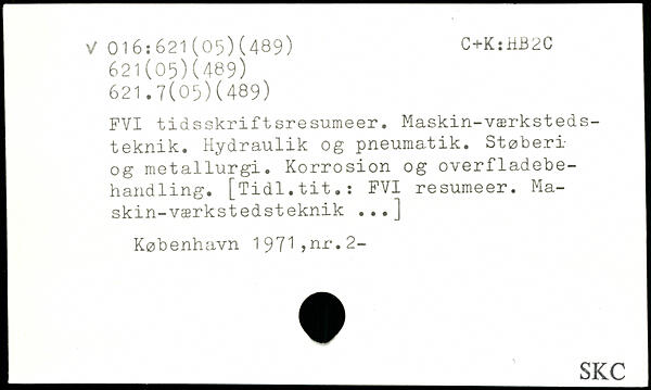 FVI tidsskriftsresumeer. Maskin-værkstedsteknik. Hydraulik og pneumatik. Støberi og metallurgi. Korrosion og overfladebehandling. [Tidl.tit.: FVI resumeer. Maskin- værkstedsteknik ...]