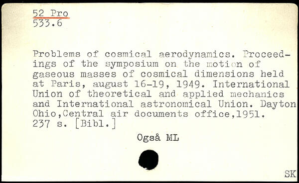 Problems of cosmical aerodynamics. Proceedings of the symposium on the motion of gaseous masses of cosmical dimensions held at Paris, august 16-19, 1949. International Union of theoretical and applied mechanics and International astronomical Union.