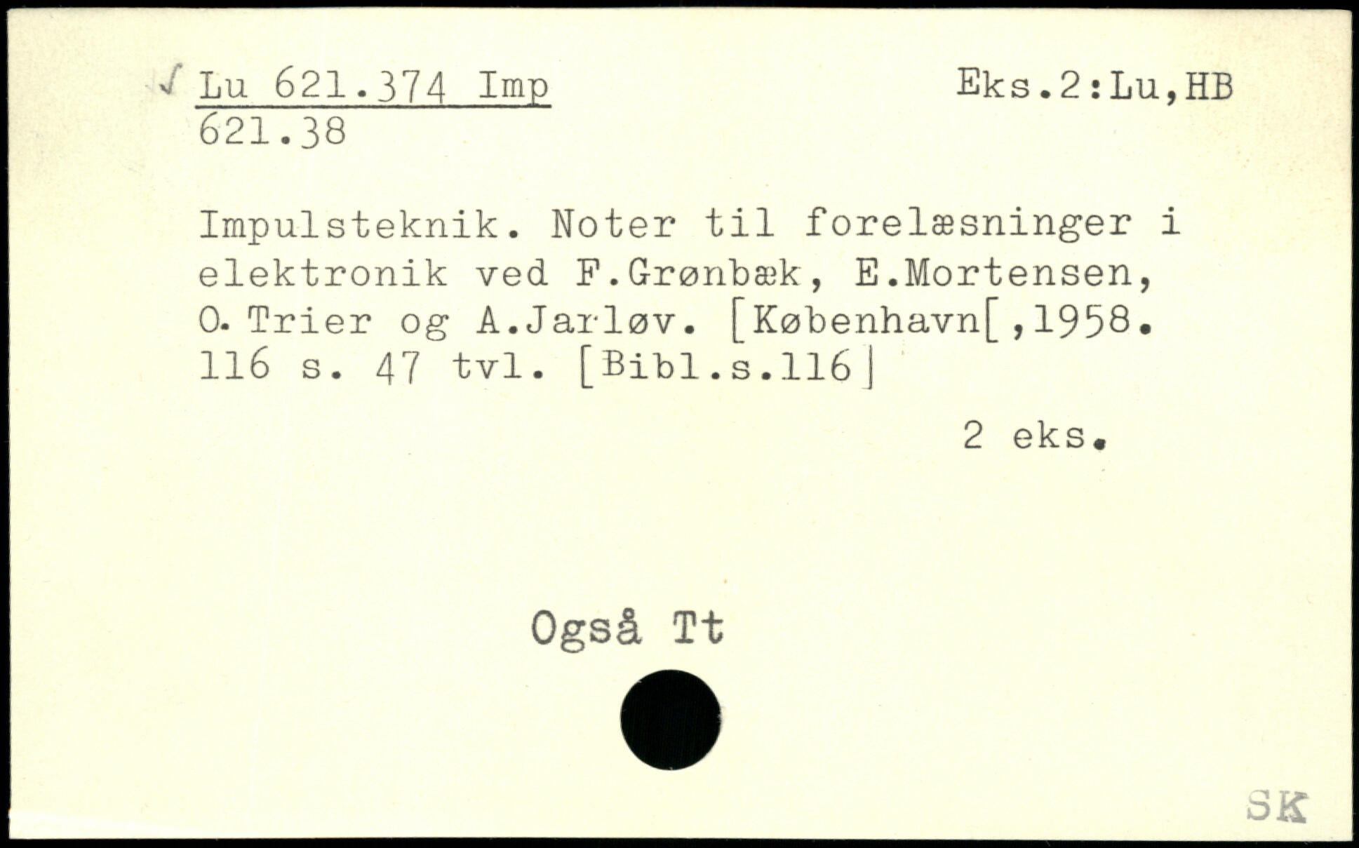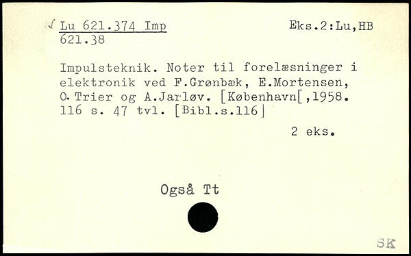 Impulsteknik. Noter til forelæsninger i elektronik ved F.Grønbæk, E.Mortensen, 0-Trier og A.Jarløv. [København[,1958.