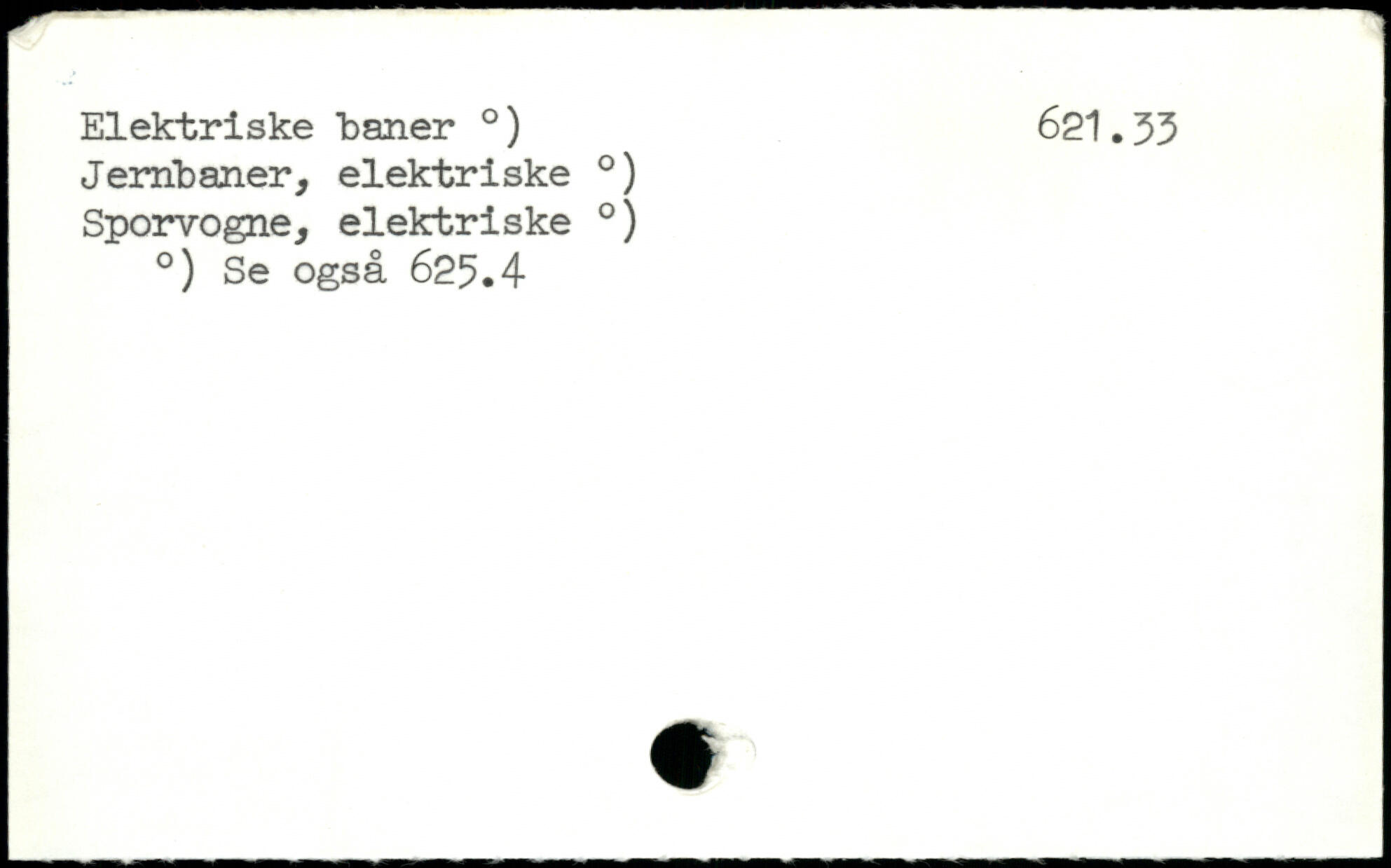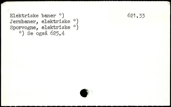 Elektriske "baner .) 621.33 Jernbaner, elektriske .) Sporvogne, elektriske .) .) Se også 625.4