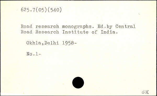 Road research monographs, Ed,by Central Road Research Institute of India, Okhla,Delhi 1958- No,!- _EK