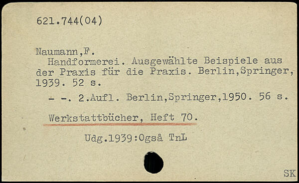 Handformerei. Ausgewählte Beispiele aus der Praxis für die Praxis. Berlin, Springer,-1939.