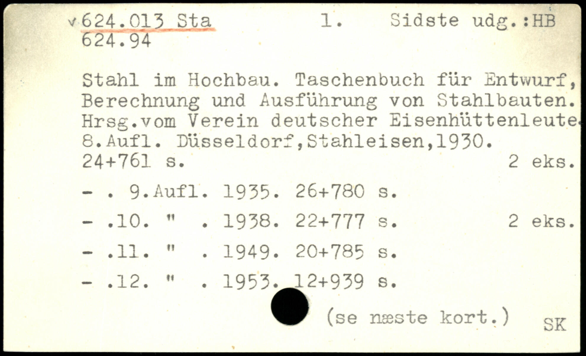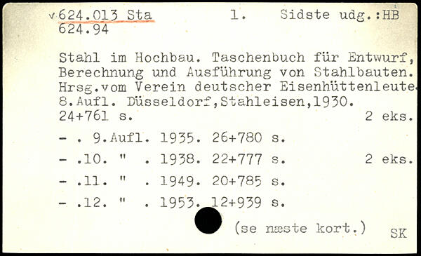 Stahl im Hochhau. Taschenbuch für Entwurf, Berechnung und Ausführung von Stahlbauten. Hrsg.vom Verein deutscher Eisenhüttenleute.