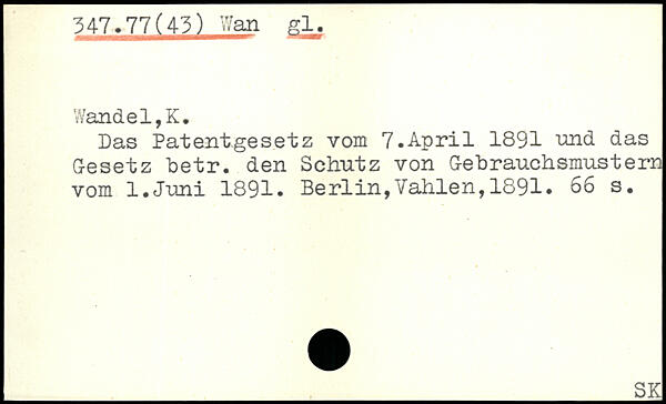 Das Patentgesetz vom 7-April 1891 “und das Gesetz betr. den Schutz von Gebrauchsmustern vom l.Juni 1891-