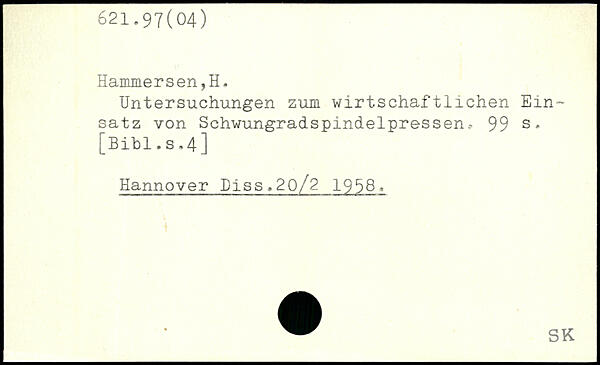 Untersuchungen zum wirtschaftlichen Einsatz von Schwungradspindelpressen.-