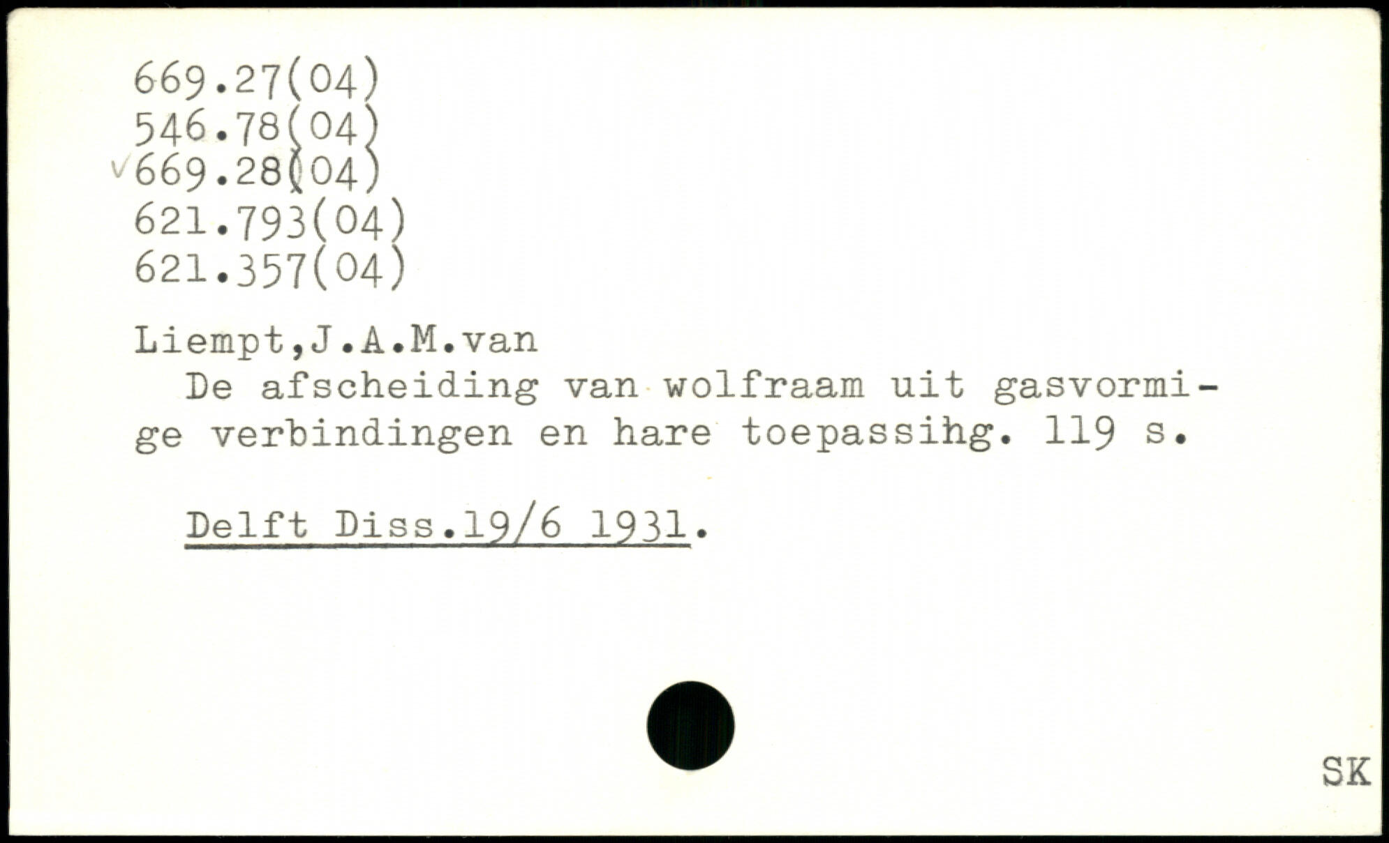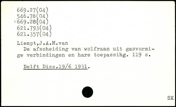 De afscheiding van wolfraam uit gasvormi-ge verhindingen en hare toepassihg.