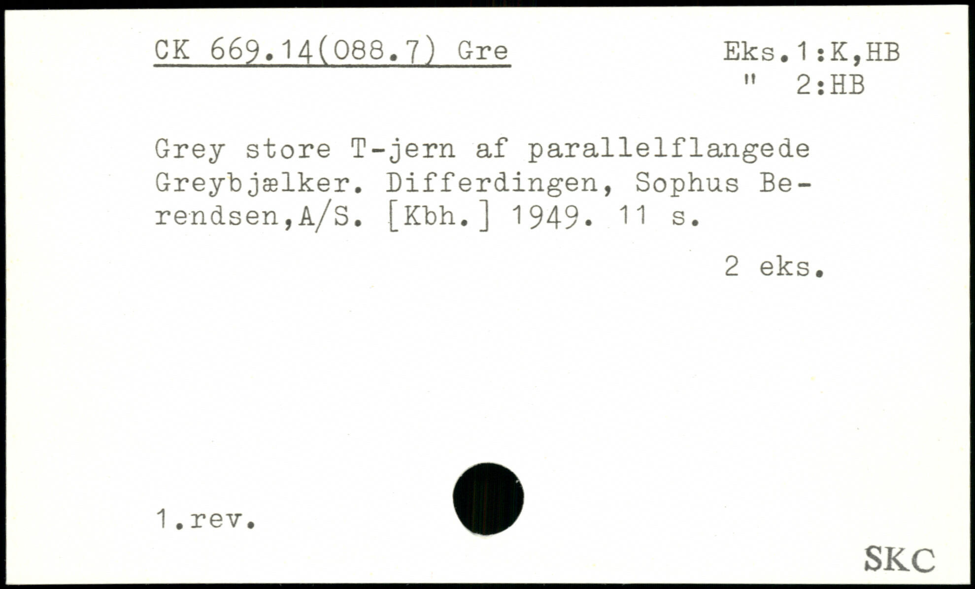 Grey store T-jern af parallelflangede Greybjælker. Differdingen, Sophus Be-rendsen,A/s. [Kbh.] 1949