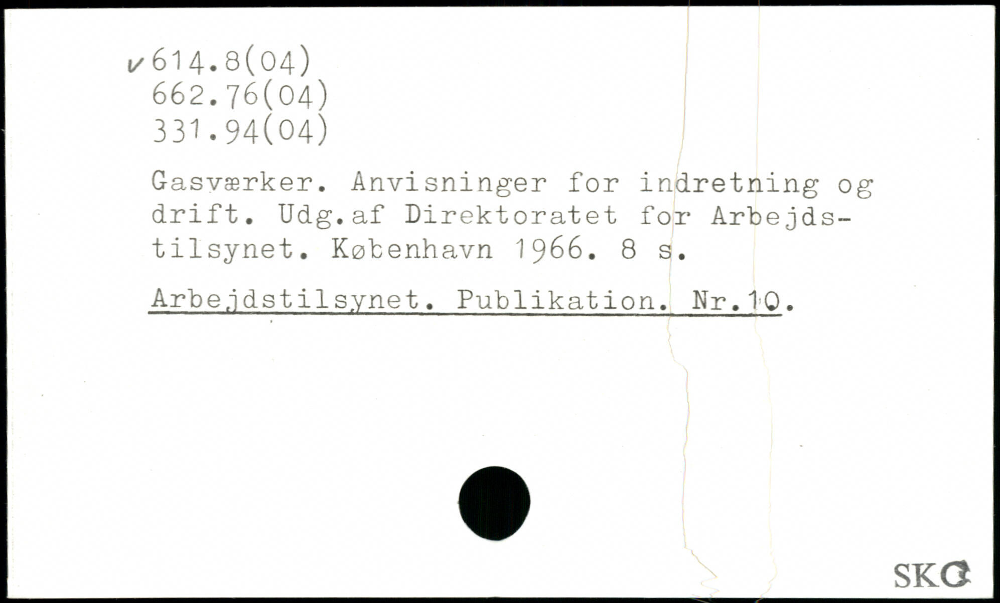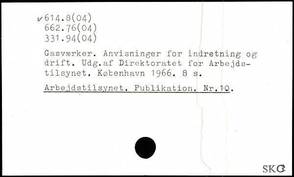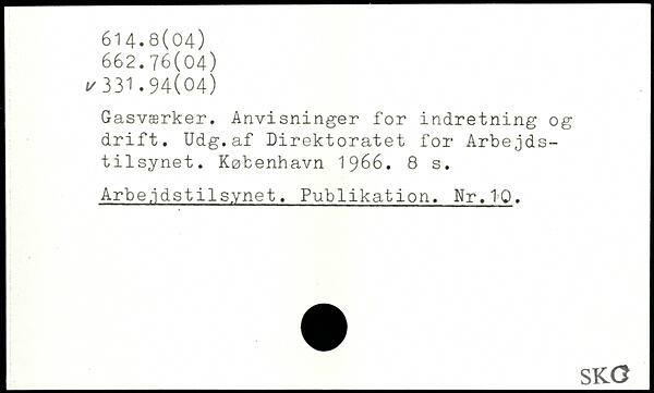 Gasværker. Anvisninger for indretning og drift. Udg.af Direktoratet for Arbejdstilsynet.