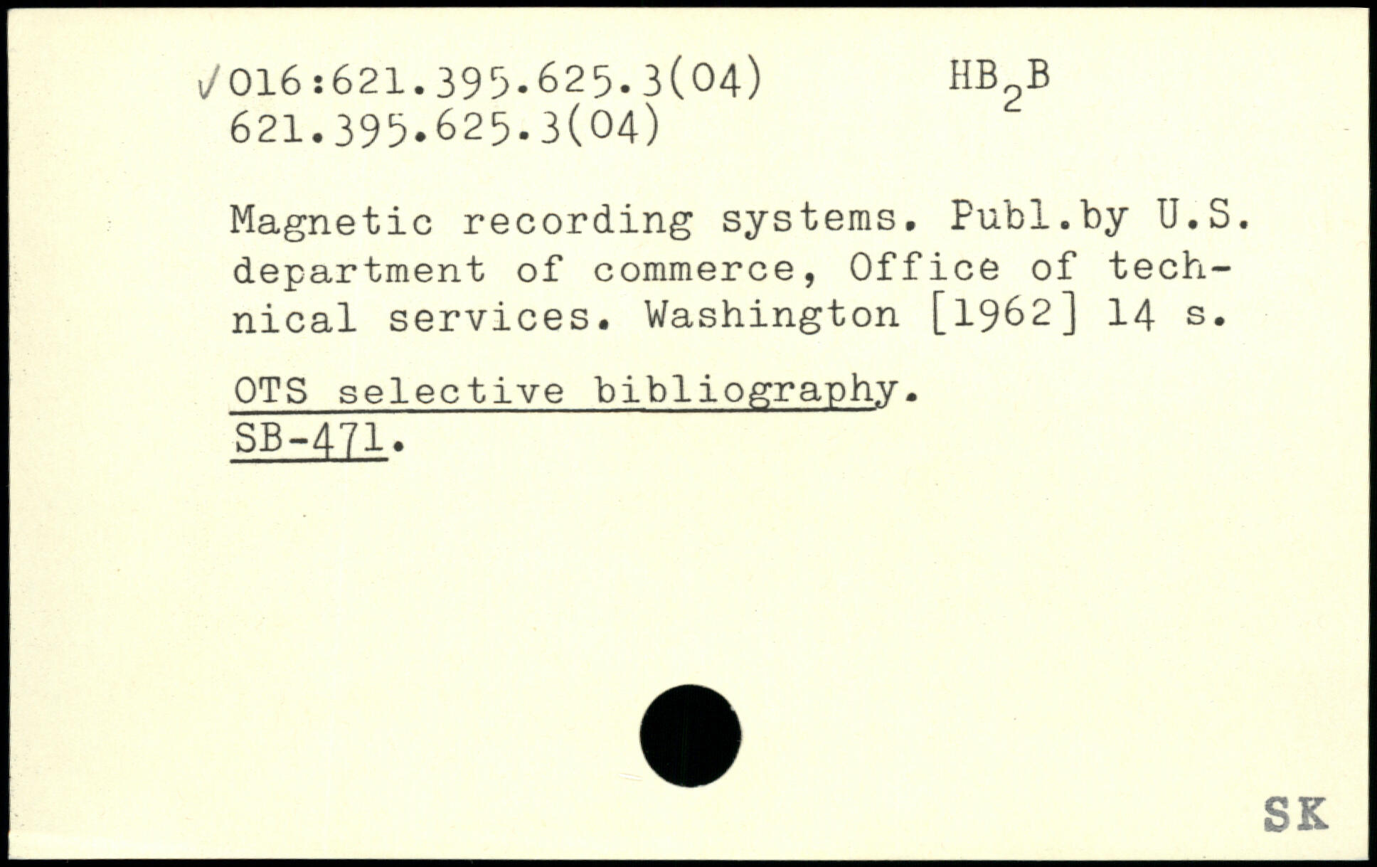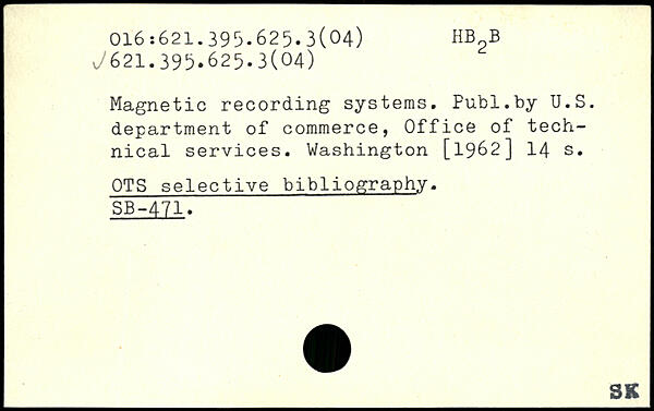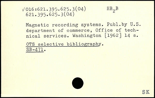 Magnetic recording systems. Fubl.by U.S. department of commerce, Office of technical services.